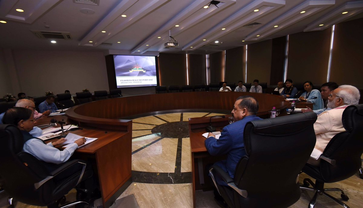 PM @narendramodi chairing a high level meeting in Khanapara, Assam to review the flood situation & relief operations in Arunachal Pradesh.pic.twitter.com/YsxZwm2ZWk