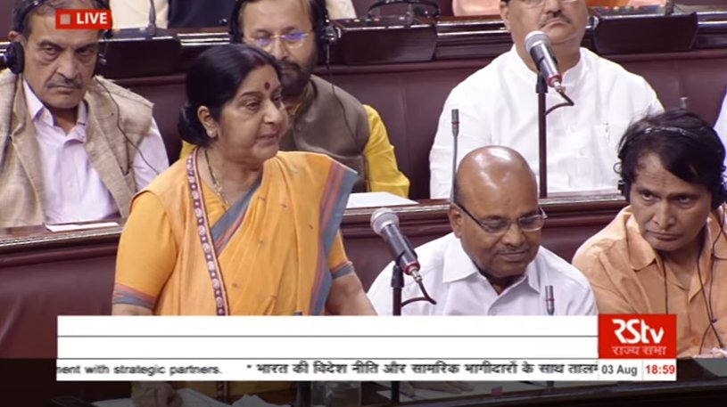 EAM Smt @SushmaSwaraj speaking on foreign policy in #RajyaSabha.pic.twitter.com/22wQ50KMIM