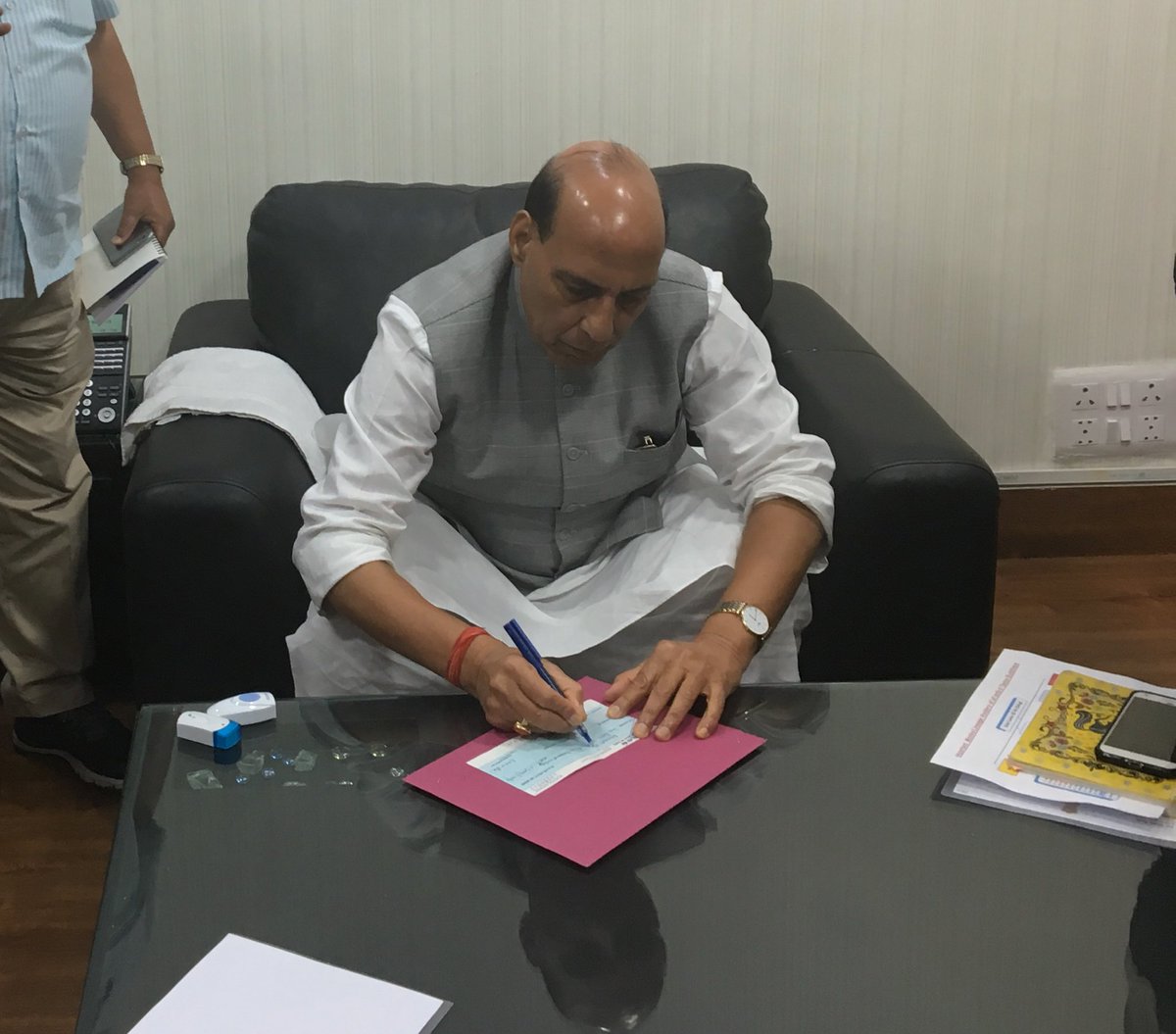 MoS Home Affairs Shri @KirenRijiju and Shri @ahir_hansraj also contributed their 1 month salary along with allowances to #BharatKeVeer fund.