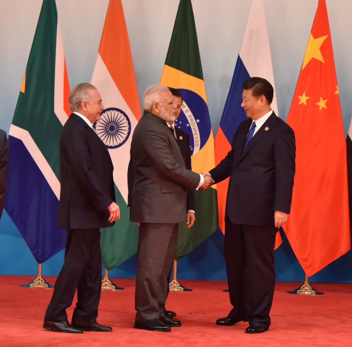 PM @narendramodi being received by Chinese President Mr. Xi Jinping at the Dialogue of Emerging Markets and Developing Countries in Xiamen.pic.twitter.com/4C2Um2QUPb