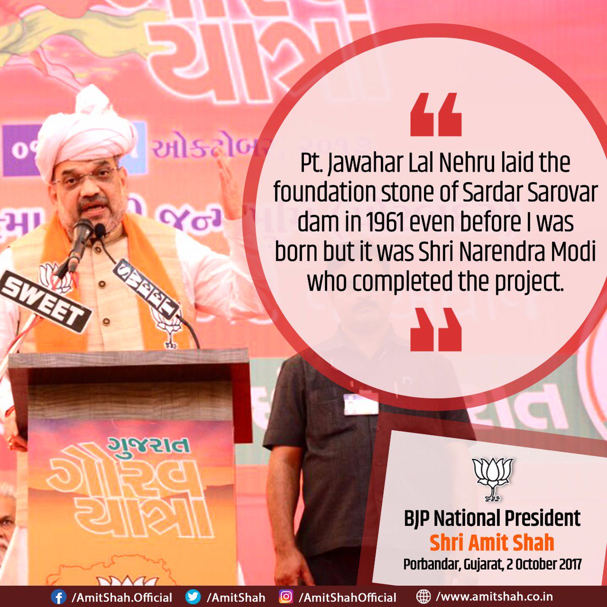 Pt Jawahar Lal Nehru laid the foundation stone of Sardar Sarovar dam in 1961 but it was PM Modi who completed the project : Shri @AmitShahpic.twitter.com/vziEWfdqp0