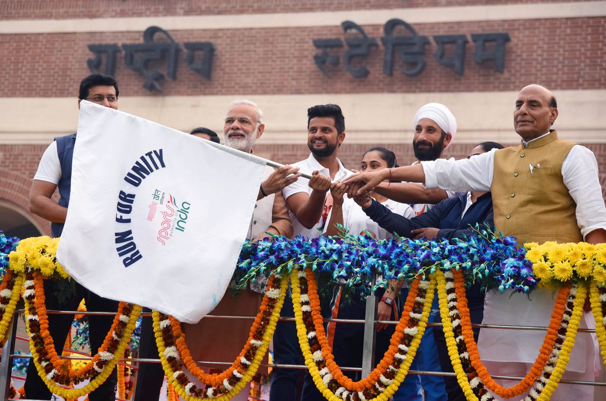 PM Shri @narendramodi flags off #RunForUnity on #RashtriyaEktaDiwas at Major Dhyan Chand National Stadium, Delhi.pic.twitter.com/tpHxZRCObf
