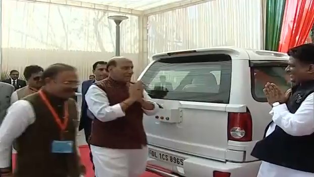 HM Shri @rajnathsingh arrives at Deen Dayal Upadhyay Marg, New Delhi. https://www.youtube.com/watch?v=GsCFP3oZncM …pic.twitter.com/v0Ytoi7jEp