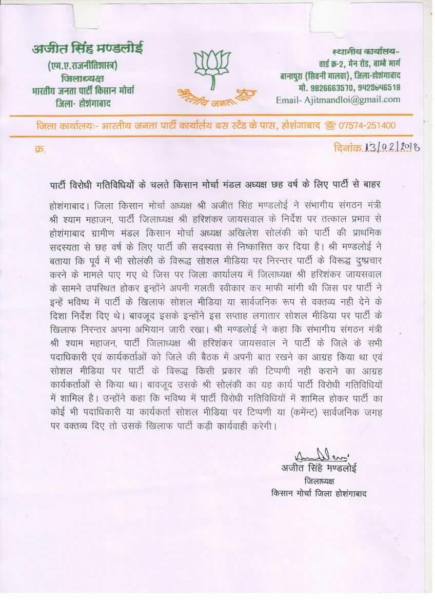 सही कहा पर आज मध्य प्रदेश होशंगाबाद में कार्यकर्ताओं को घर बैठा देने का क्रम चालू हैpic.twitter.com/s1WBu7Rt4x