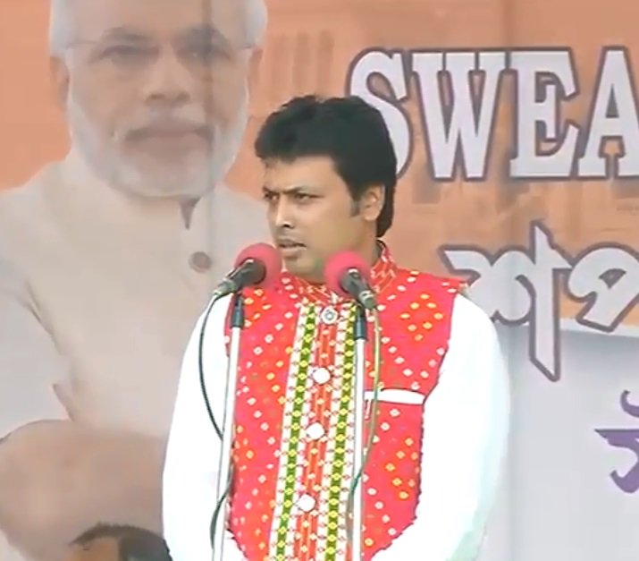 Tripura CM @BjpBiplab is addressing public rally in Agartala, Tripura. Watch LIVE at https://www.youtube.com/watch?v=d34TBn9MkvM … #NewTripurapic.twitter.com/FzNFdn46Qs