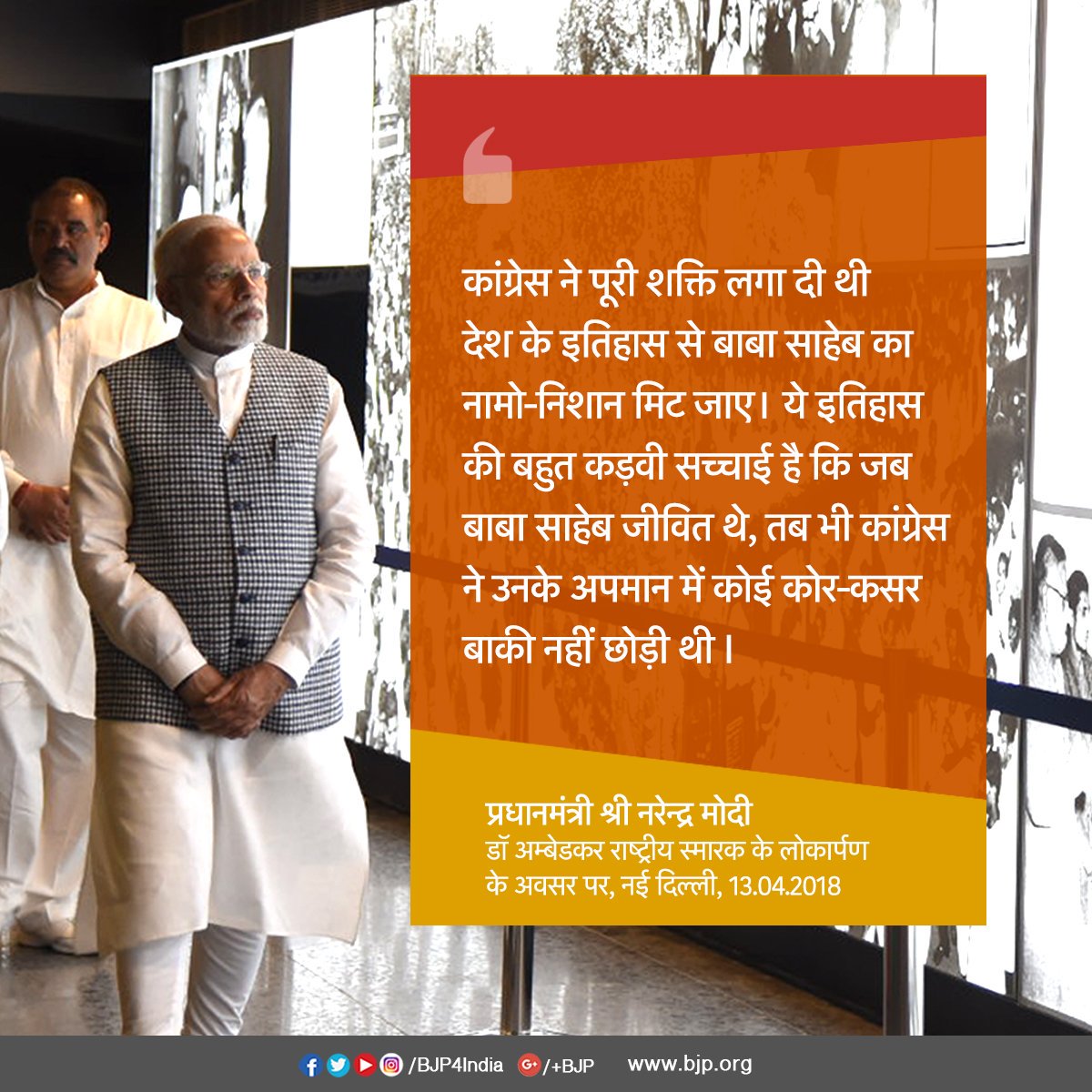 The leaders in congress were jealous of Ambedkar - of his intellectual might. He was the greatest thinker on national development. Congress humiliated this great soul. . We won’t get fooled by the congress anymore. No more appeasement only development.