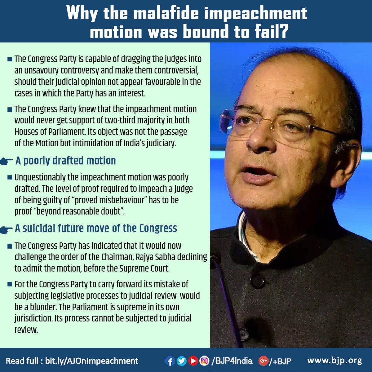 FM @arunjaitley exposes Congress and its malafide attempt to impeach the CJI that was bound to fail. Read full blog at http://bit.ly/AJOnImpeachment pic.twitter.com/JW7E9ugBFI