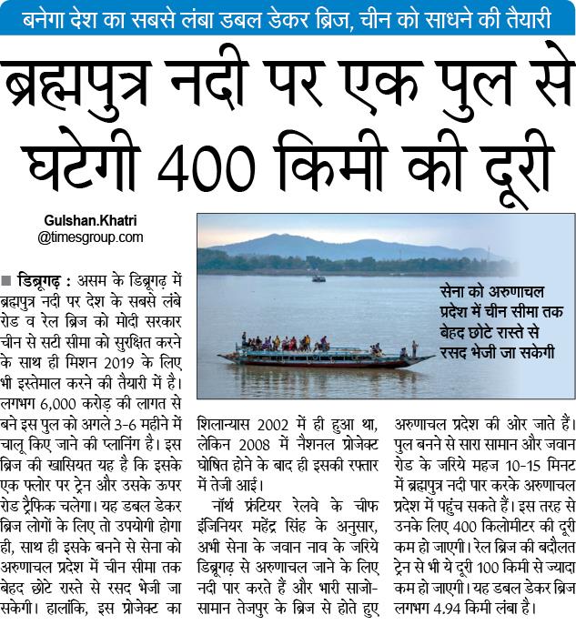 ब्रह्मपुत्र नदी पर एक पुल से घटेगी 400 किमी की दूरी। #BJPNewsTrackpic.twitter.com/HezefzK5AQ