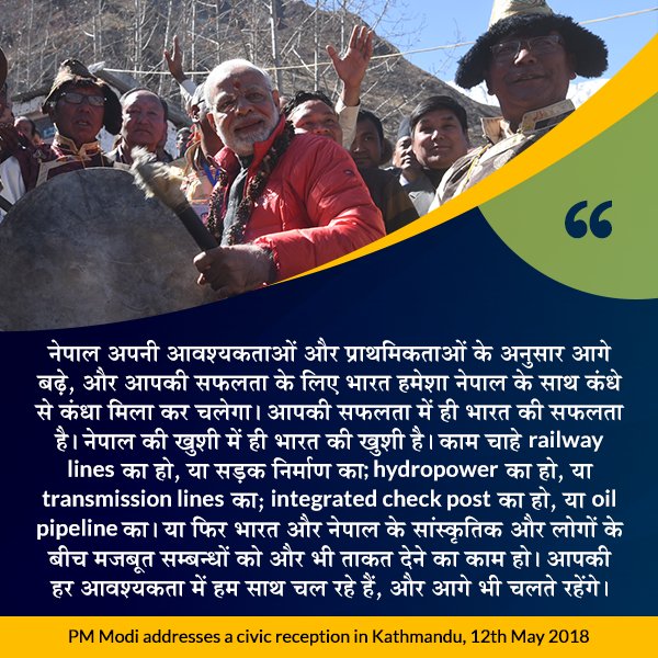 नेपाल अपनी आवश्यकताओं और प्राथमिकताओं के अनुसार आगे बढ़े, और आपकी सफ़लता के लिए भारत हमेशा नेपाल के साथ कंधे से कंधा मिला कर चलेगा: पीएम @narendramodipic.twitter.com/HBbCuIviOZ