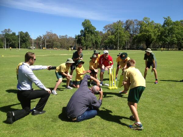 @ProfDeano teaching kids from St Patrick's primary school, Albury some of his cricket stances #MSAshesTrek #BJTMCrewpic.twitter.com/yuvPe89UyR