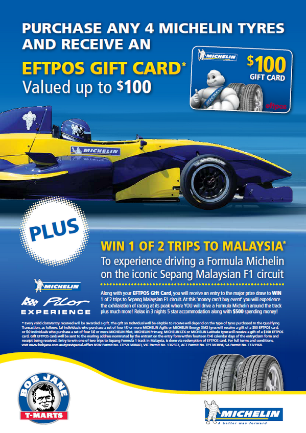 Who wants to drive a Formula Michelin on the Malaysian F1 circuit? You can. Details: http://www.bobjane.com.au/specials/michelin-bob-jane-promotion-terms-and-conditions/ …pic.twitter.com/Xm8OIGrQ0N