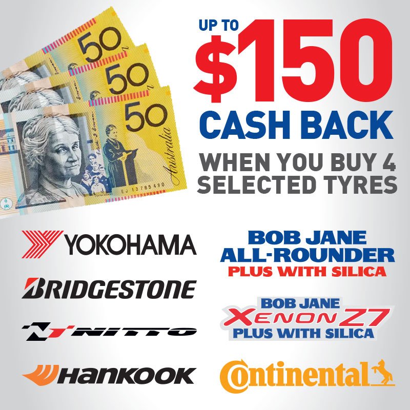 Don't miss out on up to $150 cash back when you buy four selected tyres! Conditions apply, head to our website for more details.pic.twitter.com/roCCIkiv4P