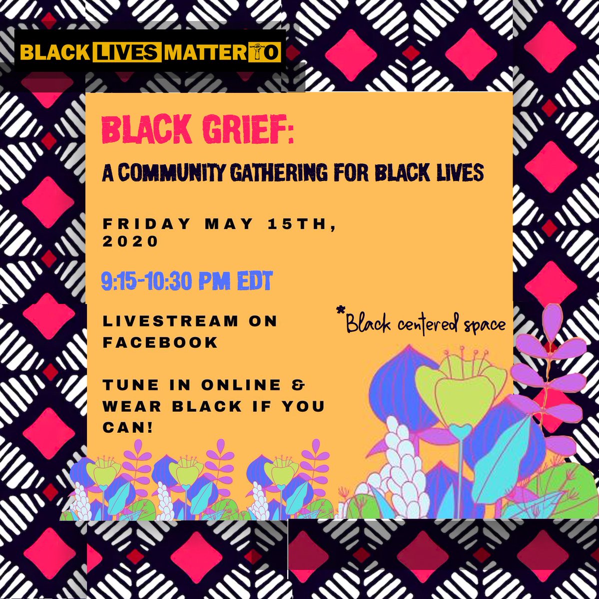 Join us tonight at 9:15pm on Facebook for a community gathering to honour the Black lives recently lost. We are angry and saddened by the news of D’Andre Campbell, Breonna Taylor, Ahmaud Arberry, Sean Reed, and Nina Pop’s deaths, and we demand justice! #BLMTO #BlackLivesMatter
