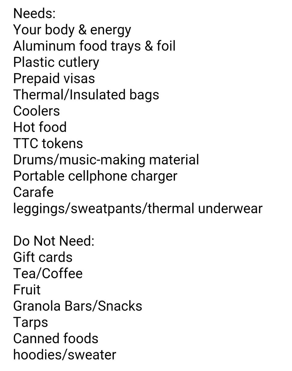 Current needs! Thank you community! Remember, everything is closed tomorrow so this is crucial #blmtotentcitypic.twitter.com/a2Nr395a5N