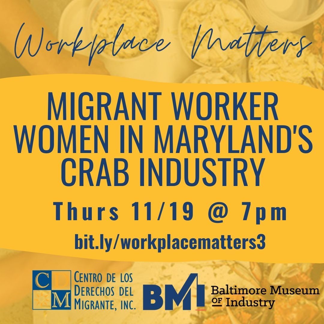 @CDMigrante for the third program in the Workplace Matters series focusing on the impact that COVID has had on migrant worker women in Maryland's crab industry. Registration is FREE. Donations are welcome. http://bit.ly/workplacematters3 …pic.twitter.com/pIj3xxhsUq