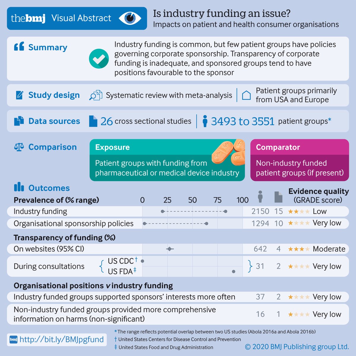 #BMJInfographic#VisualAbstract summarises new research into the impact of industry funding of patient and health consumer groups http://ow.ly/Sqo350y4PVg@will_s_tpic.twitter.com/wD8JmZ2bhM