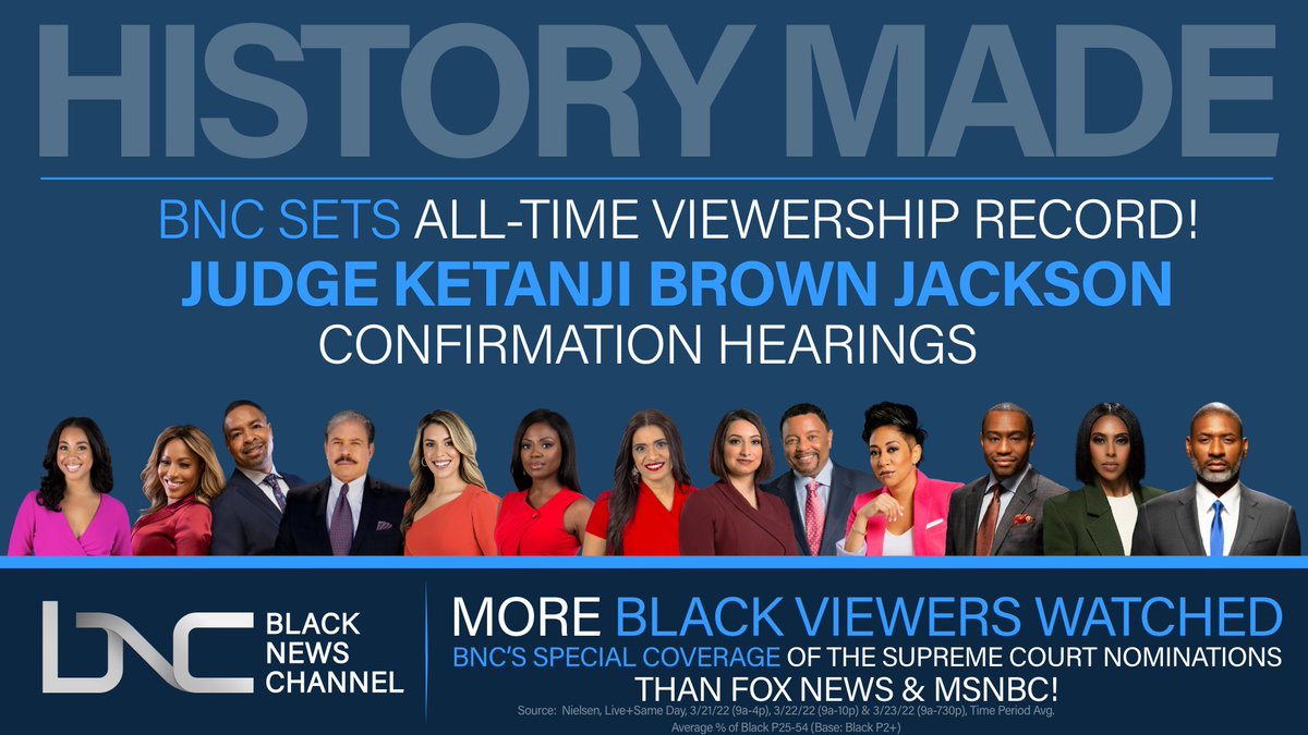 THANK YOU! WE DID IT! BNC sets an all-time viewership record! During our special coverage of Judge Ketanji Brown Jackson Confirmation hearings! THANK YOU ! Let’s Keep the momentum going – watch 15 minutes daily! BNC - America's Black News Channelpic.twitter.com/WXOhjQ8ZaY