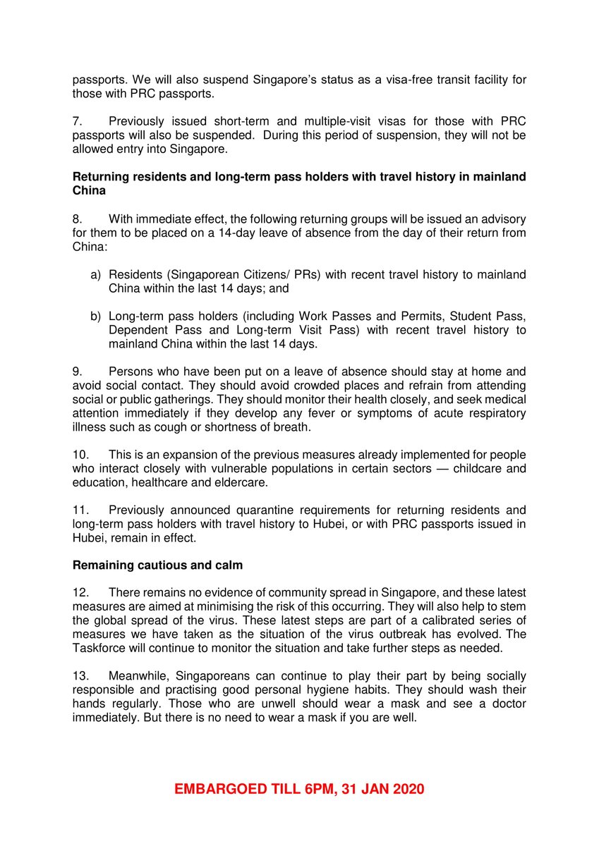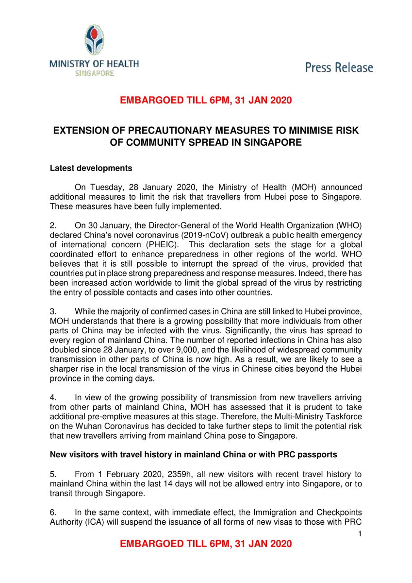 Full statement: Singapore will ban anyone who visited mainland China within the last 14 days from entering the countrypic.twitter.com/Zerb7XWCxF