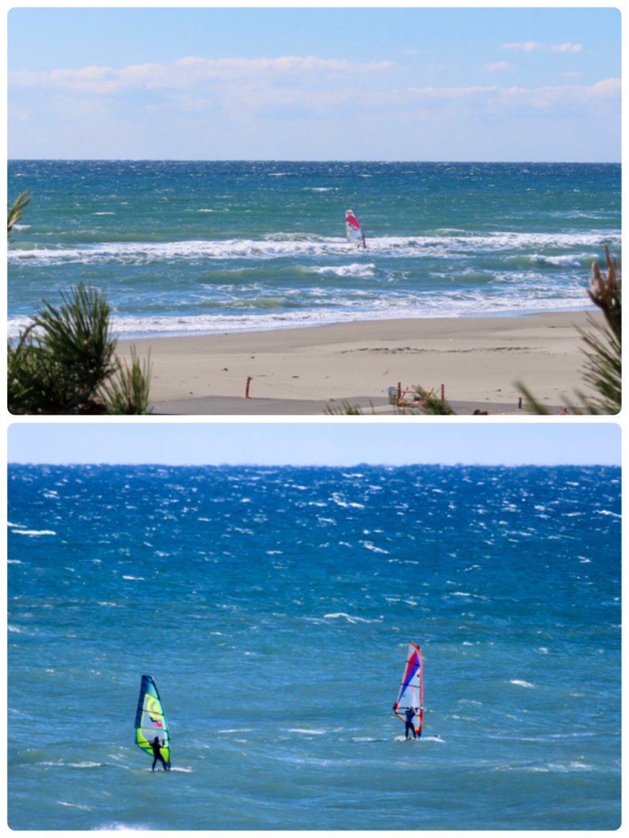 今日の遠州灘は風が強く、ウィンドサーフィンを楽しむ人がいました。 女子中学生か高校生が制服のまま、波打ち際を歩いてた。風が強いけど冷たくはないですね。 同じ冬の海岸で水難救助訓練してるのは消防署?海保?お疲れ様です。