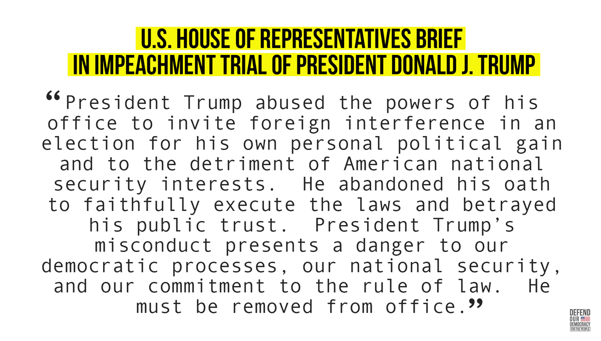 The House of Representatives has filed its brief in the impeachment trial of President Donald J. Trump. Nobody is the above the law.