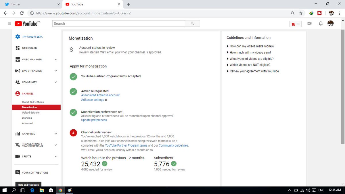 @TeamYouTube Dear sir, My youtube channel has upto 25k watch hours and 5.5k subscriber but till not monetized,Please tell me the reason why? Regards: Bazm e Qawwali. Channel URL:https://www.youtube.com/channel/UCCnppQYYaVUhv6r4prmoy_w?view_as=subscriber … … … …pic.twitter.com/IDd17Tog4C