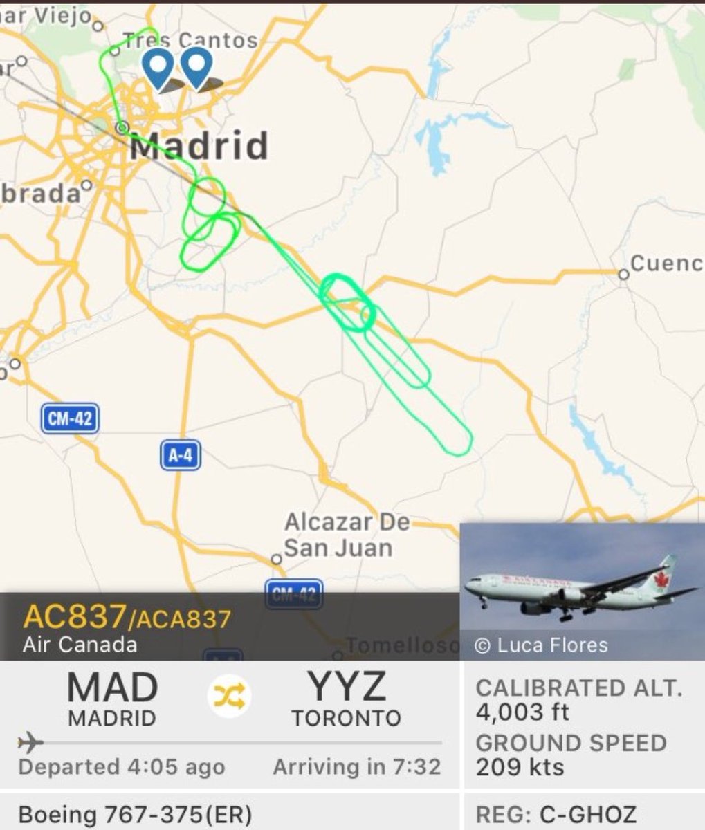 #BREAKING#AirCanada jet carrying 130 is preparing for an emergency landing at#Madrid airport after part of its landing gear fell off and entered its engine during take-offpic.twitter.com/Nnk8ONzdEO