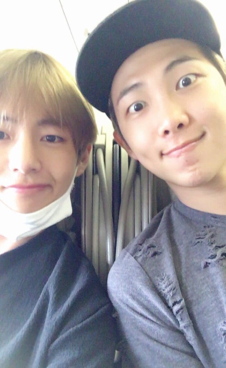 A little bit like that :3 Namjoon x Taehyung , ahhh so sweet ( ~ - v - ) ~ Congratulations for 2nd triple crown