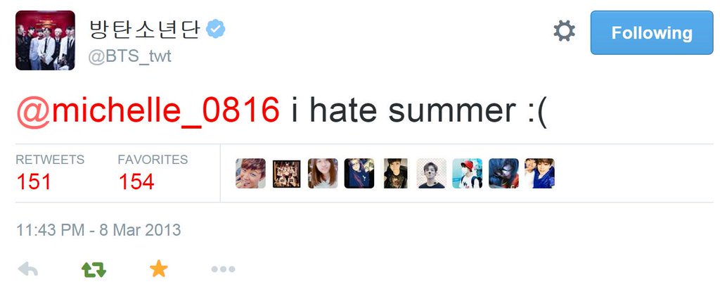 @BTS_twt I hate summer too this is destinyThanks. Twitter will use this to make your timeline better. UndoUndo