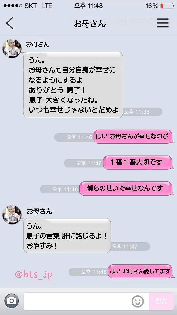 @BTS_twt】 お母さんがみんな幸せになろうっておっしゃって。あなたに何かこう申し上げるのが遅すぎたという気がした。いつも僕だけ妹だけお父さんだけを先に考えてたから‥僕がもっとちゃんとやりますよお母さん。みんなファイティン。pic.twitter.com/h5lTnqsRbS