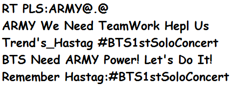 @BTS_twt PLS RT TEAMWORK ARMY @.@#BTS1stSoloConcertpic.twitter.com/2mtIfsLnNs