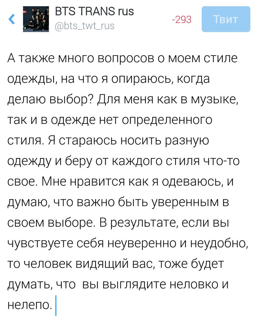 @BTS_twt】そして服を着る時ポイント?鉄則?こういうのが多かったです ただ私は音楽にでも服にでも偏見があまりなく、最大限幅広く着て自分のものにしてみたいです。でも自分が着る服を愛して、自信を持つという姿勢が重要だと思います。服をぎこちなく着れば結局見る人もThanks. Twitter will use this to make your timeline better. UndoUndo