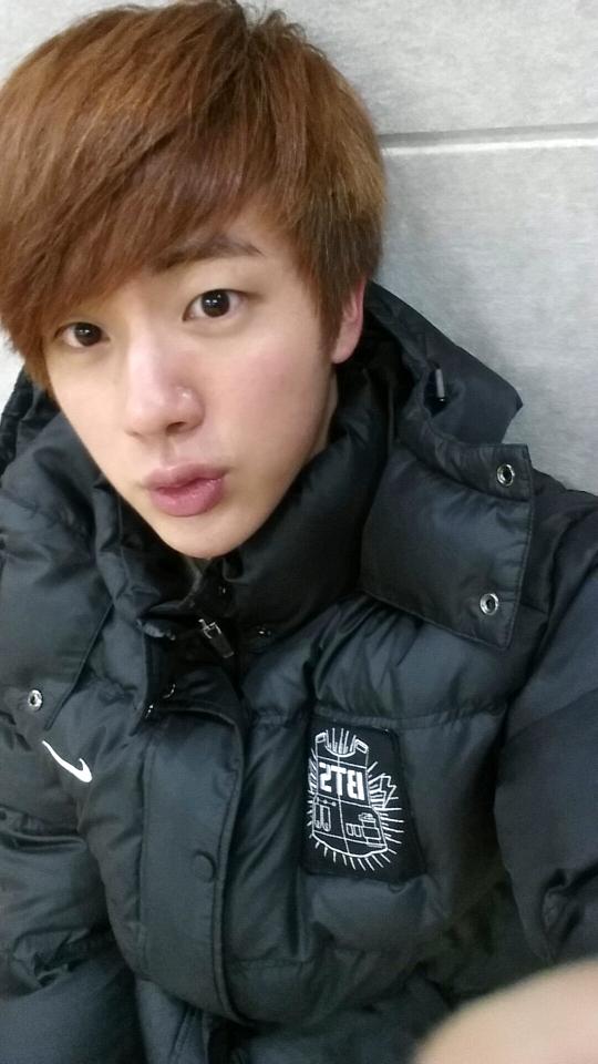 @BTS_twt 석진이 추워요??ㅠㅠㅠ 패딩입구 있는데 볼이 빨개요
