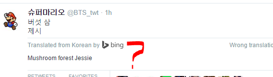 [TRANS] "Buying some mushrooms. Suggest me a few (when their profile pic was mario)" “@BTS_twt: 버섯 삼