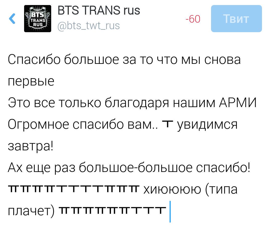 @BTS_twt もう一度1位本当にありがとうございます。本当にあーみーの皆さんのお陰です。本当にありがとうございます…ㅜ明日会いましょう! あー本当にありがとうございます ㅠㅠㅠㅠㅠㅜㅜㅜㅠㅠフオオオンオンㅜㅜㅜㅠㅜㅠㅠㅠㅠㅠㅜㅜpic.twitter.com/osftKMWv6S