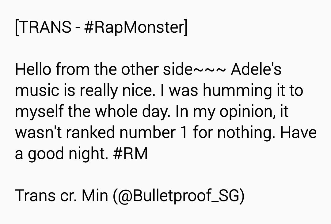 @BTS_twt Adele is a queen, the song is beautiful ~ glad she's back!Thanks. Twitter will use this to make your timeline better. UndoUndo