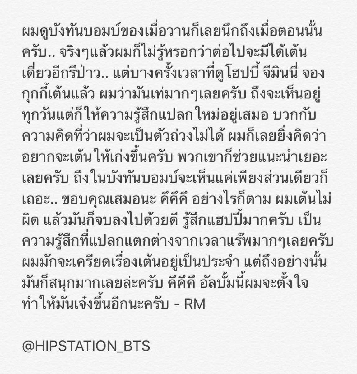@BTS_twt: ผมดูบังทันบอมบ์ของเมื่อวานก็เลยนึกถึงเมื่อตอนนั้นครับ.. จริงๆแล้วผมก็ไม่รู้หรอกว่าต่อไปจะมีได้เต้นเดี่ยวอีกรึป่าว..pic.twitter.com/rmhQpA8Qvp