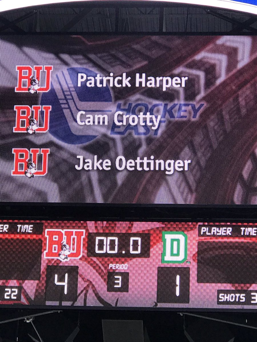 @g_crotty and@gerry_suzanne - the kid@Cam51Crotty had a goal, a cut, and a penalty to earn his second straight Jumbotron appearance!!#GoBU#ProudToBUpic.twitter.com/3ITB3RiRAX