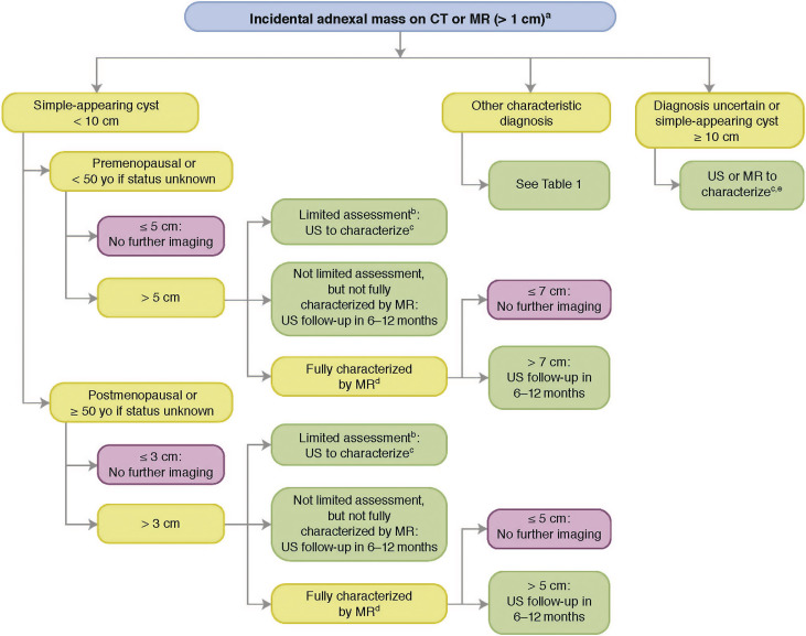 @RadiologyACR guidelines recommend no further imaging for simple or hemorrhagic cysts < 5 cm in premenopausal women (or < 50 yo if status unknown).@ASER_ERad@BWHERad https://twitter.com/ASER_ERad/status/1216859841131577344 …pic.twitter.com/7RCqLK6v65