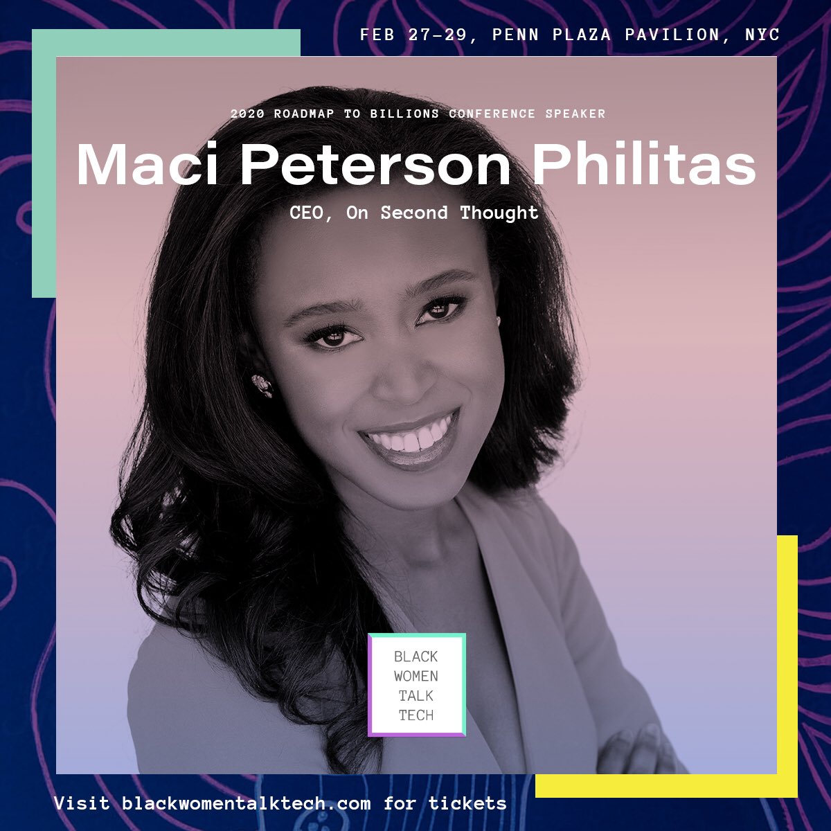 @OnSecondThought,@MaciPeterson Catch her at the 4th annual Roadmap to Billions Conference this Feb. 27th- Feb. 29th. Discount tickets are going fast, so get yours today! http://www.blackwomentalktech.com/attend #BWTTCON2020pic.twitter.com/YHdJVIEgDw