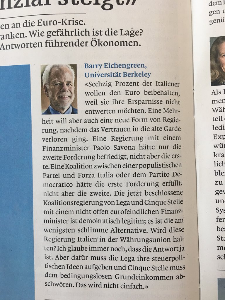 Commenting on Italy in @Weltwoche together with @B_Eichengreen, @FuestClemens, @daniel_kalt, @GuntherSchnabl and others. pic.twitter.com/UFDA2usOLy