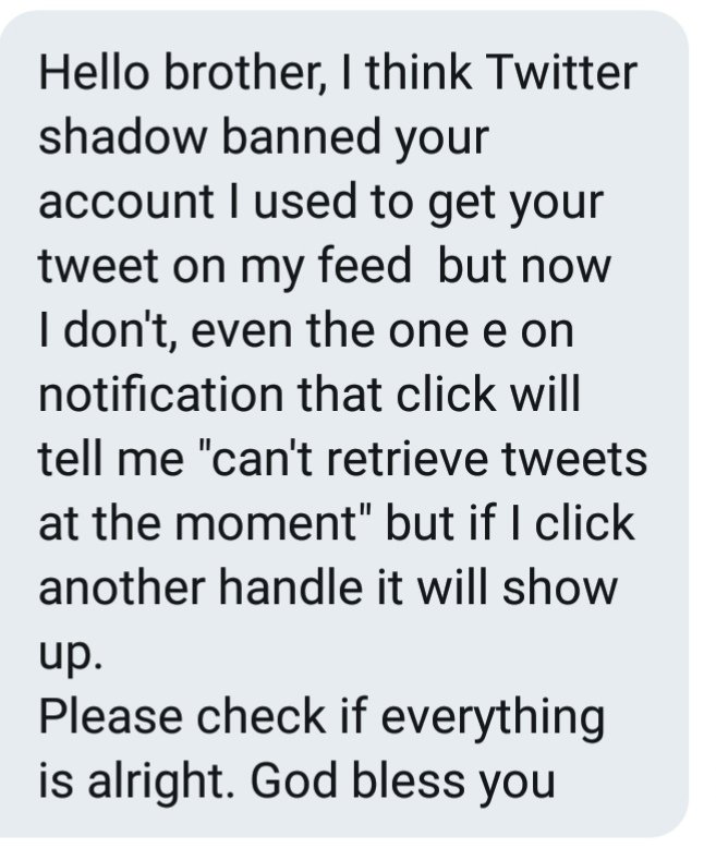 a yes your account appease to of been shadow banned. will show up to no one unless logged in and then only to people who follow you & mabby there followers :( they fucked you but have only banned khommani once and not shadow banned himpic.twitter.com/PwADHjpxfn