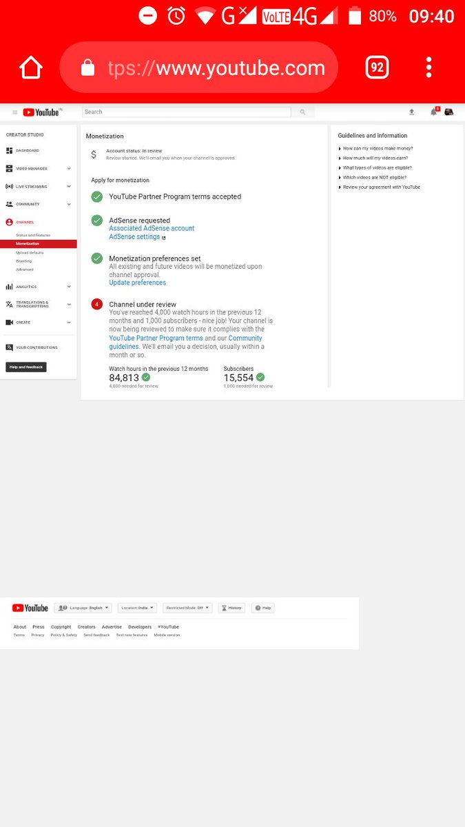 Dear team YouTube @TeamYouTube @YouTubeIndia my channel under-review and 15k subscribe and 84k watching time and good work my channel,dear team i still waiting, my channel monetization enable i wait