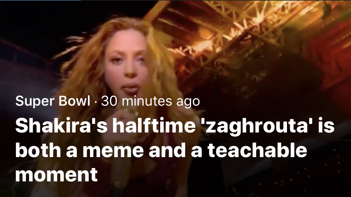 can’t wait for the twitter moment titled “Shakira Made a Bonkers Sound during the Superbowl Halftime Show, and People Have Questions”