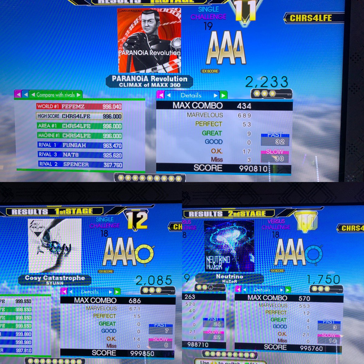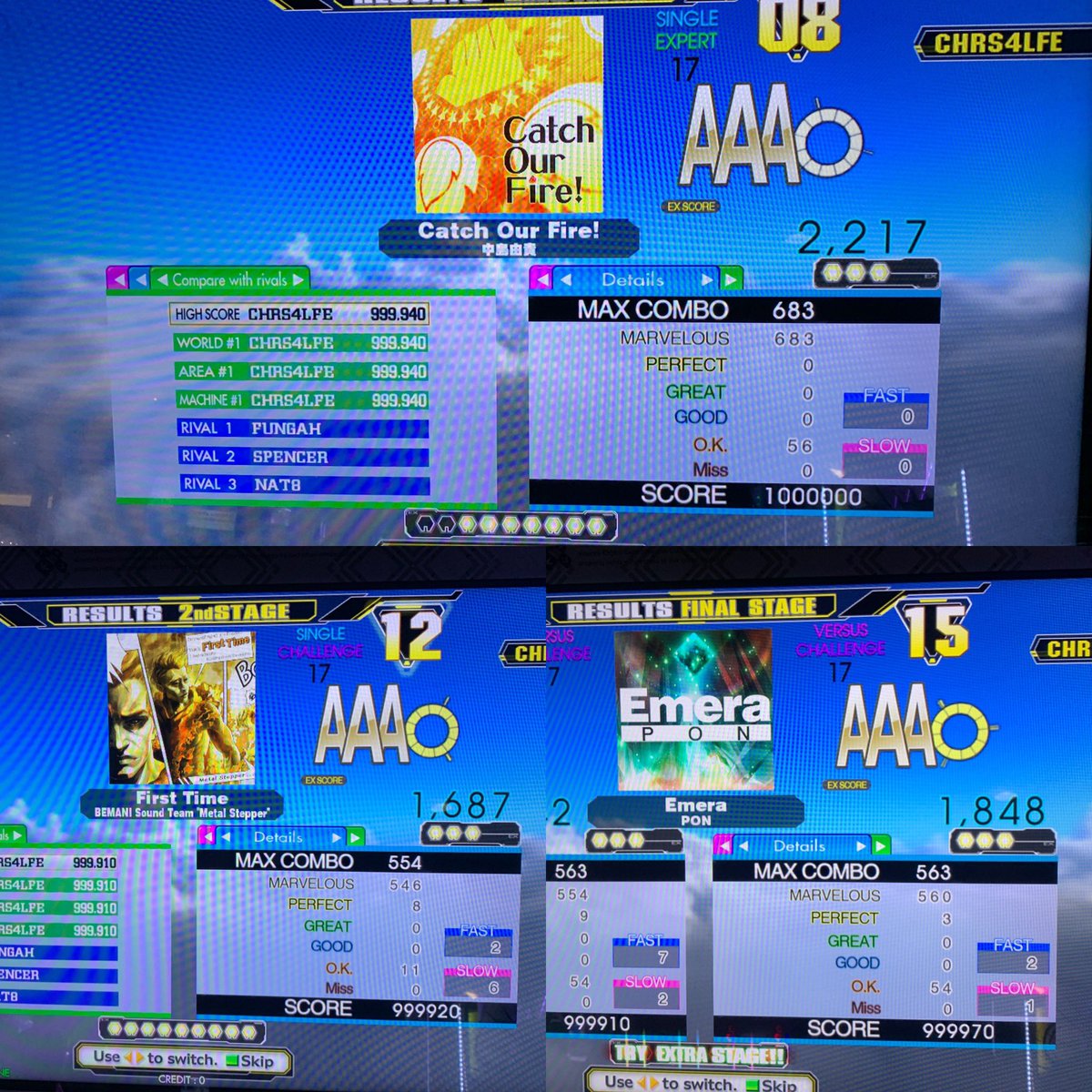 Solid Day 1 of KAC qualifiers! Miraculously MFCd Catch Our Fire while I was practicing it my warmup sets...so lucky 😅 Catch Our Fire: 2217 (-0) Emera: 1848 (-3) First Time: 1687 (-8) C Catastrophe: 2085 (-15) Neutrino: 1750 (-23) P Rev: 2233 (-80) TOTAL: 11820 (-129) World #1!pic.twitter.com/LFzy7icZVh