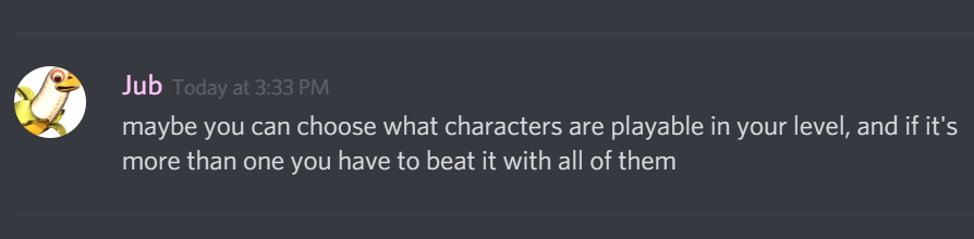 Yeah I doubt they'd complicate it that way plus having people worry about specific character properties when designing levels would be bad. (Also i am in that conversation on discord!)