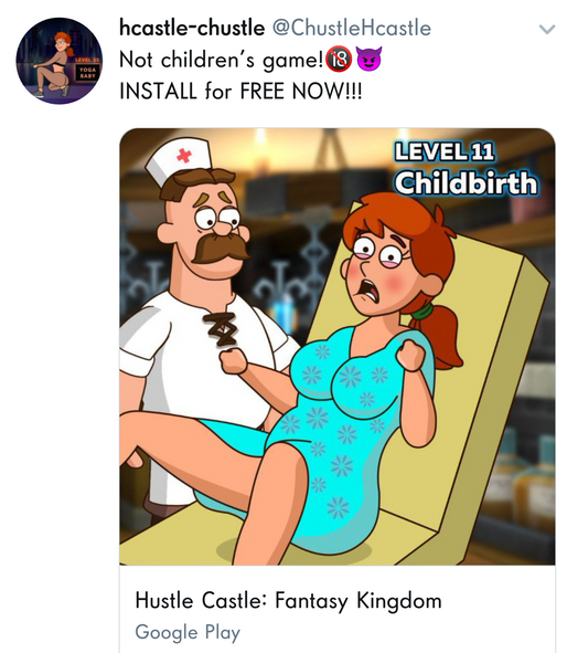 if you asked me 10 years ago what ads would look like in a free market with no regulations, where the objective was solely to optimise for number of kids' clicks over hundreds of A/B tests, i would not predict that a local minimum would be Childbirth, but here we arepic.twitter.com/VE2a3qhxhz