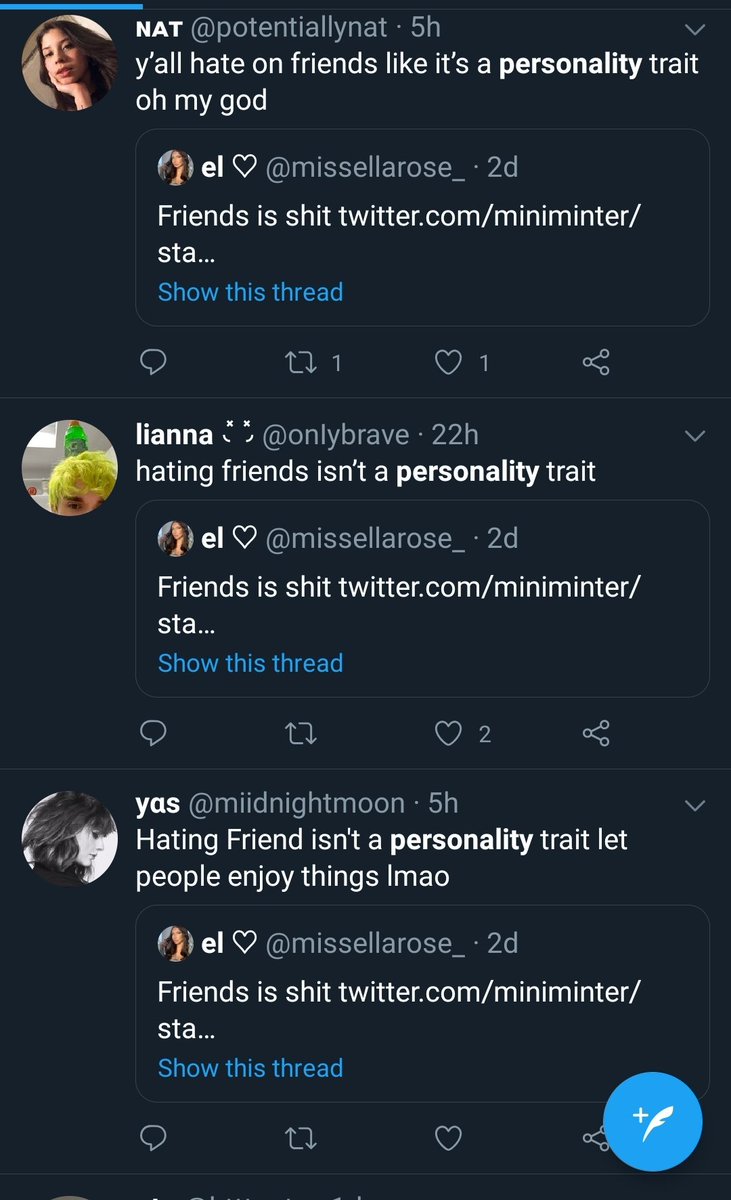 Read the replies and bear witness to the caliber of person who defends Friendshttps://twitter.com/moonliqhtstar/status/1230988820050534403 …