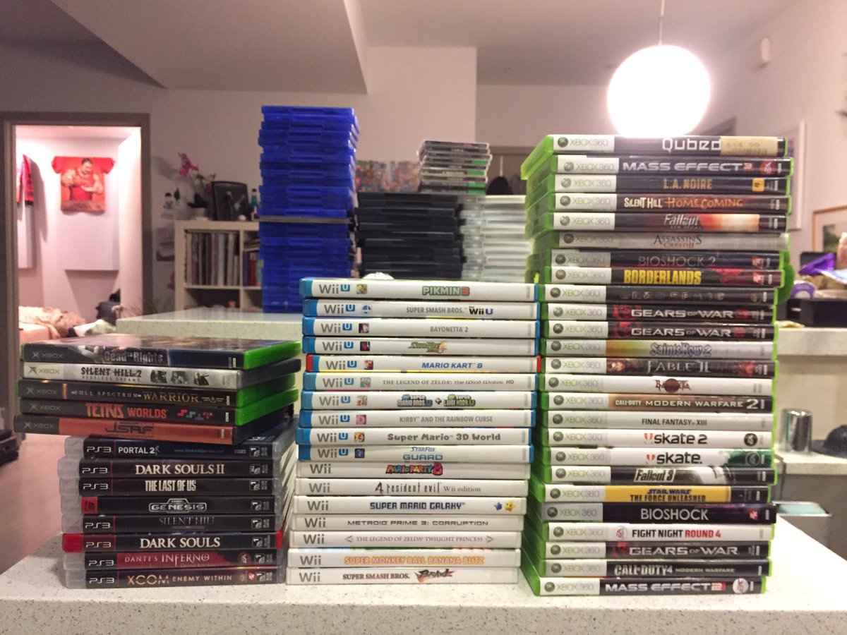 just spent 2 hrs downsizing our entire ancient-ass video game + movie collection into a Big Ass Thing to make some space in our living room