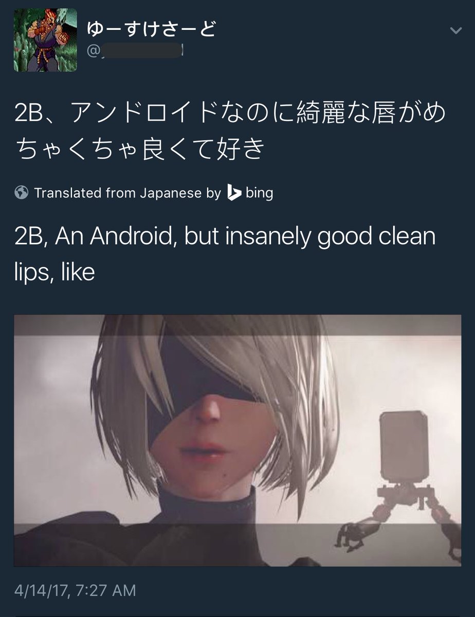 Seems like a better translation would be something like "Even though 2B is an android, her beautiful lips are extremely good & I like them"