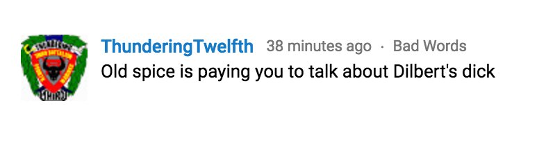 Imagine an Old Spice ad where it's just Terry Crews screaming about Dilbert's dick.
